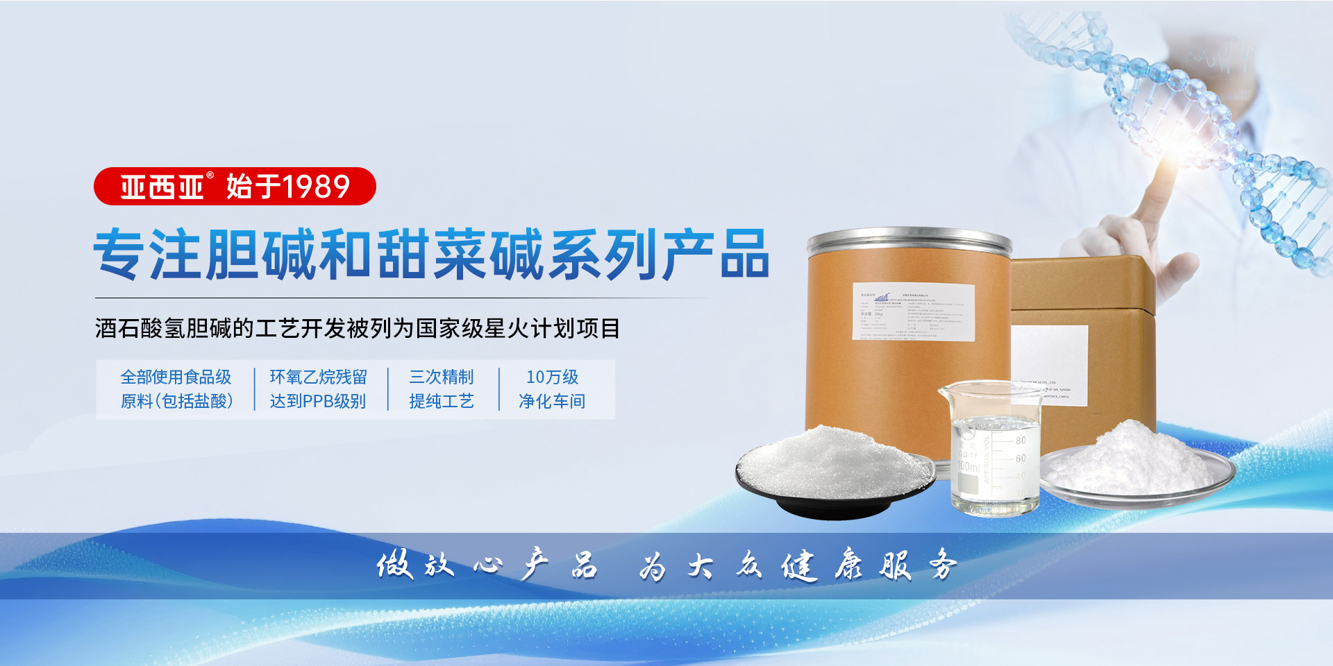 自1989年起亚西亚专注胆碱和甜菜碱系列产品的生产和研发,并在国内创新推出了胆碱系列营养保健食品,产品通过了多项体系认证,以及获得发明专利和各种证书100多项,始终致力于以更加专业的团队和技术为全球消费者和客户提供优质的营养补充剂。